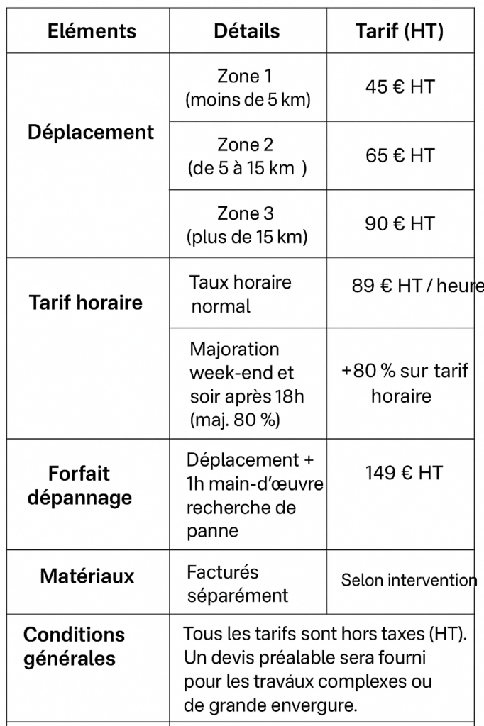 L’ensemble de nos prestations comprend: INSTALLATION/RÉPARATION/ENTRETIEN